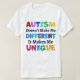 Inspirational quote of “AUTISM Doesn't Make Me DIFFERENT, It Makes Me UNIQUE” with colourful Autism puzzles to support and advocate Autism Awareness.
