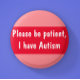 Please be patient I have Autism. For those who want to let others know to be a bit more patient. If you want a different saying just change the wording and personalize how you would like. The background colors can be changed, anything that you prefer.