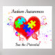 Beautiful and unique shining heart with autism puzzles, and floral decoration around the heart to support Autism Awareness.