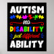 This funny autism awareness family support month design shows "autism no disability just a different ability"