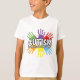 The t-shirt feels and looks great quality, a good thick cotton. It will be a little big for my son, but that means he will be able to wear it and not out grow it too soon. The print was as described on the order when personalised. True size, shape and colour T-shirt- thanks.