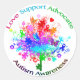 Beautiful and unique autism puzzle tree with butterflies, ribbons, and hearts in a spectrum of colour, and “Love Support Advocate” to support Autism Awareness.