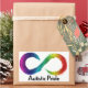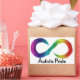 Autistic Pride text with rainbow neurodiversity infinity logo.