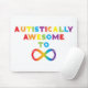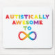 Design made with love for Autism Awareness. Rainbow letters form the phrase 'Autistically Awesome To Infinity' with an infinity symbol.