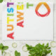 Design made with love for Autism Awareness. Rainbow letters form the phrase 'Autistically Awesome To Infinity' with an infinity symbol.
