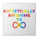 Design made with love for Autism Awareness. Rainbow letters form the phrase 'Autistically Awesome To Infinity' with an infinity symbol.