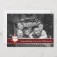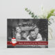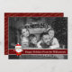 A modern photo Christmas card design with your family photo filling the card face and automatically converted to black and white. Fun Santa Claus decor with dark red text band for your words.