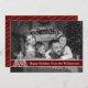 A modern photo Christmas card design with your family photo filling the card face and automatically converted to black and white. Fun modern art Christmas tree decor with dark red text band for your words.