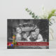 Auto Black and White Photo Elf and Red Text Band Holiday Card