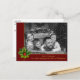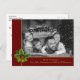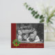 Personalise the front and back of this fun photo Christmas postcard. A modern clean photo Christmas card design with your family photo auto-converted to striking black and white filling the card face behind a Christmas red and gold frame highlighted with a pine and holly bough. Bottom band holds your names and Christmas greeting in a gold font. You can personalise the backside holiday greeting, your return address and your names in script near the bottom with space for you to add a handwritten personal note.