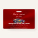 A glorious and luxurious badge for an auto body shop and painting business. The logo is a sports car with an incredible paint job on a rich, crimson, metallic-look background. Customise with your details and give a strap line, quote or personal message to give a professional feel and really sell your service. There's more details for you to fill in on the back to complete your name badge.