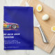 A glorious and luxurious kitchen towel for an auto body shop and painting business reception area. The logo is a sports car with an incredible paint job on a rich, royal blue metallic-look background. Customise with your details and give a strap line, quote or personal message to give a professional feel and really sell your service. These also make great promotional giveaways to help market your business