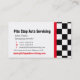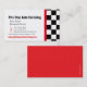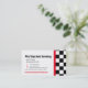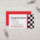 Business card for automotive / auto car motor recovery and car servicing professionals. Motor racing chequered flag design in red white and black. Personalise with your own business details and business details. Designed by Sarah Trett.