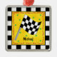 Auto Race Fan Chequered Flag Name Personalised Metal Tree Decoration