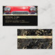 Red sports car for auto sales person or dealership owner. Personalise with name, business name, your photo and contact info in gold text on black.