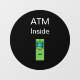 Simple ATM Inside retail store window cling with image of an automatic teller machine on the sticker label you can adhere to your store door window or front window to let customers know there is access to an ATM in your place of business.