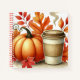 Capture your thoughts and inspirations in this elegant notebook, decorated with autumnal watercolor patterns. The cover features soft illustrations of pumpkin, a smoky take-away coffee, and leaves with vibrant shades of orange, red and yellow. Ideal for taking notes, drawing or writing your ideas, this notebook brings a warm touch from autumn to your days. Perfect for lovers of the season who appreciate design and creativity.