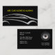 Automotive audio and alarm systems business card template in a bold yet simple two side design with car symbol on the front and cools audio speaker on the back along with text templates to customise online.