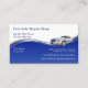 Automotive business cards with cool blue design element, image of a fast car, and white background colour you can change if you want. Designed for a body shop that fixes car wrecks, general auto repair, or a car mechanic.