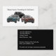 Automotive body and collision shop and automobile painting services business card in an editable custom design you can personalise online. Designed with a graphic of a car in three different colours.