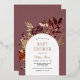 Shower invitation featuring an arched frame of watercolor autumn foliage and flowers. Customise with your information. Click "click to customise further" to change the font style, size or colour.