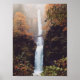 A misty beautiful morning in October 2016 at the majestic Multnomah Falls. Colorful fall leaves & lush green moss, in a dreamy filter. Columbia River Gorge, Oregon.