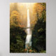 A misty beautiful morning in October at the majestic Multnomah Falls. Colourful fall leaves & lush green moss. Columbia River Gorge, Oregon.