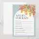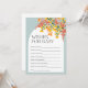 A perfect baby shower activity for guests. These cards make a great keepsake for the mother-to-be. The design showcases a large grouping of beautiful fall coloured flowers and is accented with a white boho arched box and a light dusty teal background.