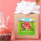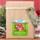 This cute and fun thank you sticker features a brown hair girl with a basket of apples and a scarecrow and crow. In the background is a bright red barn, a brown picket fence, trees, sunshine, pumpkins and baskets of corn and apples. The text combines bold and sans serif fonts for a stylish and modern look. This is perfect for an autumn fall themed birthday party.