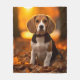 Embrace the rustic charm of Autumn with our stunning blanket showcasing an adorable Beagle pup in a harvest field as the sun sets in the background.
