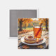 Autumn Blessings magnet. A pretty illustration of plate of a glazed donut, apple cider with cinnamon sticks and a pretty Fall leaves background.