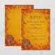 Festive yellow, red, brown and orange toned fall theme wedding RSVP design featuring decorative autumn coloured leaf and vine border with a a group of pumpkins in the bottom corner. The background has a beautiful faux texture for an old paper look. This design also comes on many other paper products to suit all your wedding set needs. Follow the link below.