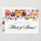 Will you be my maid of honour? Invite family and friends to be part of your wedding party with this customisable bridal party proposal card. It features a watercolour garland of orange, burgundy, blush and red autumn flowers. Personalise by adding your details. This maid of honour proposal card is perfect for fall weddings. Matching items are available.