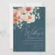 Autumn Blush Peach Coral Teal Blue Floral Wedding Invitation