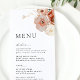 This Autumn Bohemian Floral Wedding Menu from the Emilia Collection features hand-drawn florals in fall shades of burgundy, pink, and gold. Personalise it with your details easily and quickly. Simply press the 'customise it' button to further re-arrange and format the style and placement of the text.