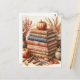 Send a little autumn warmth with this charming cosy fall postcard featuring a beautifully illustrated still life of vintage books stacked high, accented with pumpkins, cinnamon sticks, autumn leaves, and rustic pottery. Perfect for book lovers, cosy mystery fans, and anyone who adores the charm of autumn reading nooks and seasonal decor, this postcard captures the essence of fall hygge.