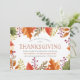 Our charming and modern Thanksgiving dinner invitation beckons friends to celebrate with you in style. Design features a border of painted watercolor autumn leaves, buds and branches, with your Thanksgiving dinner details in the centre. "Eat, drink and be thankful" appears across the top in curved lettering.