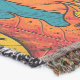 A quality printed throw has its advantages. This is a much finer weave throw than its loopier cousins, and though lighter, it is worth the investment for custom room accessorizing. The back is much prettier than the typical brown, and the fringe on the long sides very vivid, the selvage nicely done. Before photographing, I washed the throw in cold water, delicate, with a thicker woven throw the same size. On tumble dry low, this throw was dry in half the time as the other. This is a very practical quality if you use throws for furniture covers or to wrap up in frequently. The sleekness of the fabric makes it a great layer for accenting or protecting without the feeling of sitting on too much stuff. Perfect for napping or when you feel a light chill coming on. The color printing is beautiful and on this fabric, matched the design and color of my Photoshop image. This is an advantage for blending room fabrics and colors. The fringe on the short sides prints the colors from the design image and therefore varies from the side fringe. I streaked a white fractal line through the plaid pattern to give the illusion of weaving. This printed as crisp as an illusory thread, and put some white in the short side fringe, showing another advantage of print vs loomed- for artistic purposes, line lines, detail, and color integrity can be planned and preserved. My loomed throws have color limitations and more of a needlepoint texture. Print throws reproduce an exact image. The throw felt a little stiff straight out of the package, but this went away in the first delicate wash. Of course I searched the wash water for ink or bleeding and there was none.
