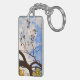 Stark black branches stand out against yellow autumn foliage and a blue sky with interesting cloud formations in an abstract pattern on this fine art acrylic keychain.