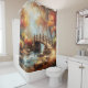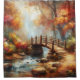 “Autumn Bridge Over Serene Stream” Shower Curtain
