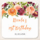 Autumn Burgundy and Orange Floral Birthday Square Paper Coaster