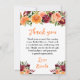 Autumn Burgundy and Orange Floral Bridal Shower Thank You Card