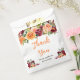 This beautiful and elegant wedding favor bag features watercolor burgundy red and orange flowers with foliage. The text combines handwritten script and serif fonts for a stylish and modern look. This is perfect for an autumn fall rustic wedding.