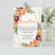 This fun and whimsical wedding reception enclosure card features watercolor burgundy red and orange flowers with foliage on a gold geometric frame. The text combines handwritten script and serif fonts for a stylish and modern look. This is perfect for an autumn fall rustic wedding.