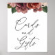 Cards and Gifts Sign featuring watercolor burgundy and blush flowers to match the Elegant Autumn Collection found in the Adore Paper Co. Zazzle Shop.
