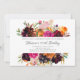 Beautiful birthday party invitation featuring burgundy & orange watercolor flowers set on a white background with a coordinating floral back.