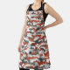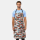 A bold camo print apron featuring a pattern of rich Tuscan reds and charcoal grey perfect for hunting, camping, and barbecuing.