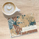 These 4" x 5.6" thank you cards feature an abstract leaf design in shades of blue spruce, cinnamon, caramel and pine with placeholders for the names of the bride and groom. The inside is intentionally left blank for a personalised note.