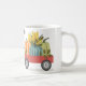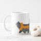 Autumn grey cat in an orange scarf and a wagon full of pumpkins and winter squash.