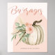Serve drinks in seasonal elegance with this Falling in Love with Baby “Beverages” table sign. Designed with a soft blush pink arch framing a creamy ivory background, it features a white watercolor pumpkin surrounded by eucalyptus leaves, blush roses, pampas grass, and pheasant feathers. The warm terracotta orange text reads Beverages, with customisable text underneath for drink station details or a personal message. Perfect for a girl’s fall baby shower, this sign coordinates beautifully with the entire Falling in Love with Baby collection to create a refined, cohesive look.